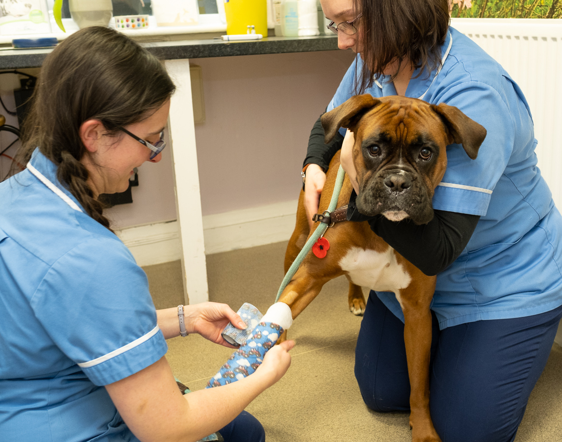 All our nurses are fully trained to remove your animals stitches or staples – you will be advised on collection of your pet of which type has been used and when they will need removing. Wound management is also a speciality of our nurses and they can guide you through any problems your pet may have during the wound healing period.